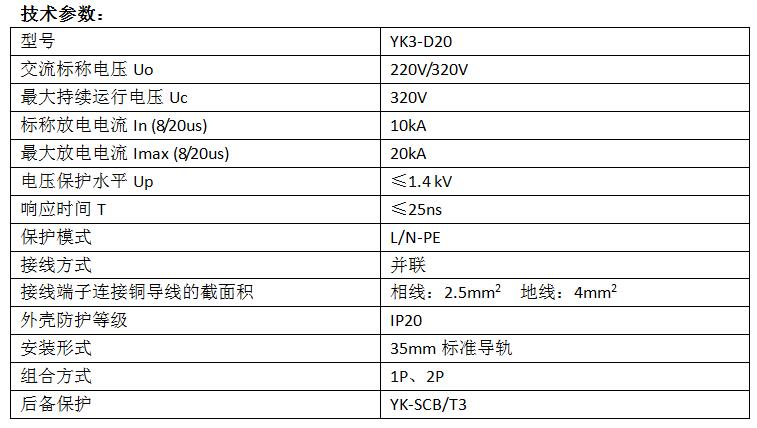YK3-D20 T2型電涌保護器